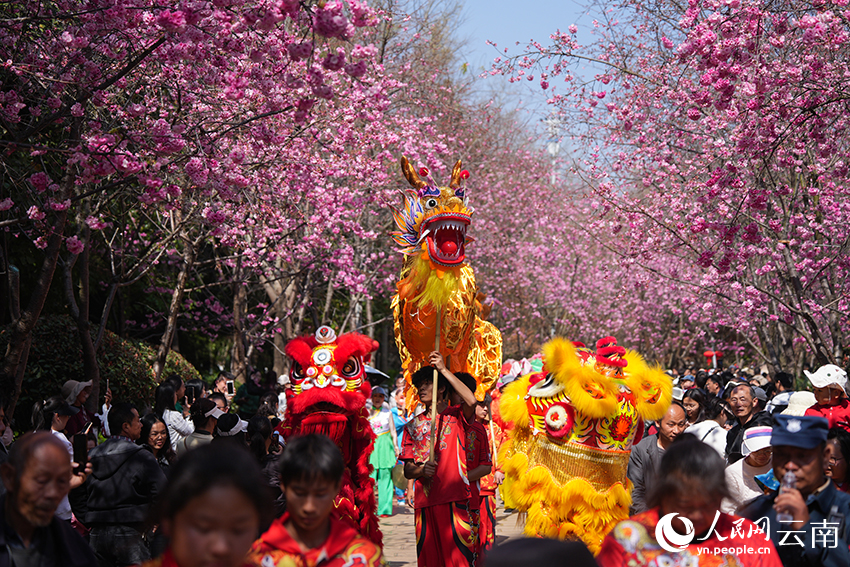 人民網(wǎng)昆明3月2日電 (記者李發(fā)興)近日,昆明市呈貢區(qū)洛龍公園內(nèi)的櫻花競相綻放,吸引眾多市民和游客前來踏青賞花、打卡拍照,盡享春日美好。